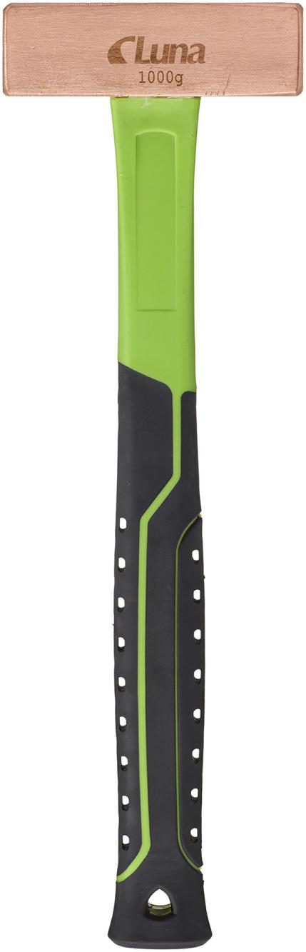 Hode av ren kobber, som gir et skånsomt slag mot følsomme materialer og flater. Hodet er sikret gjennom skaftet med en kobbersplint. Kan brukes i gnistfrie miljøer. Glassfiberskaft med spesialgummi for beste grep uansett vær. Hull for verktøysikring.